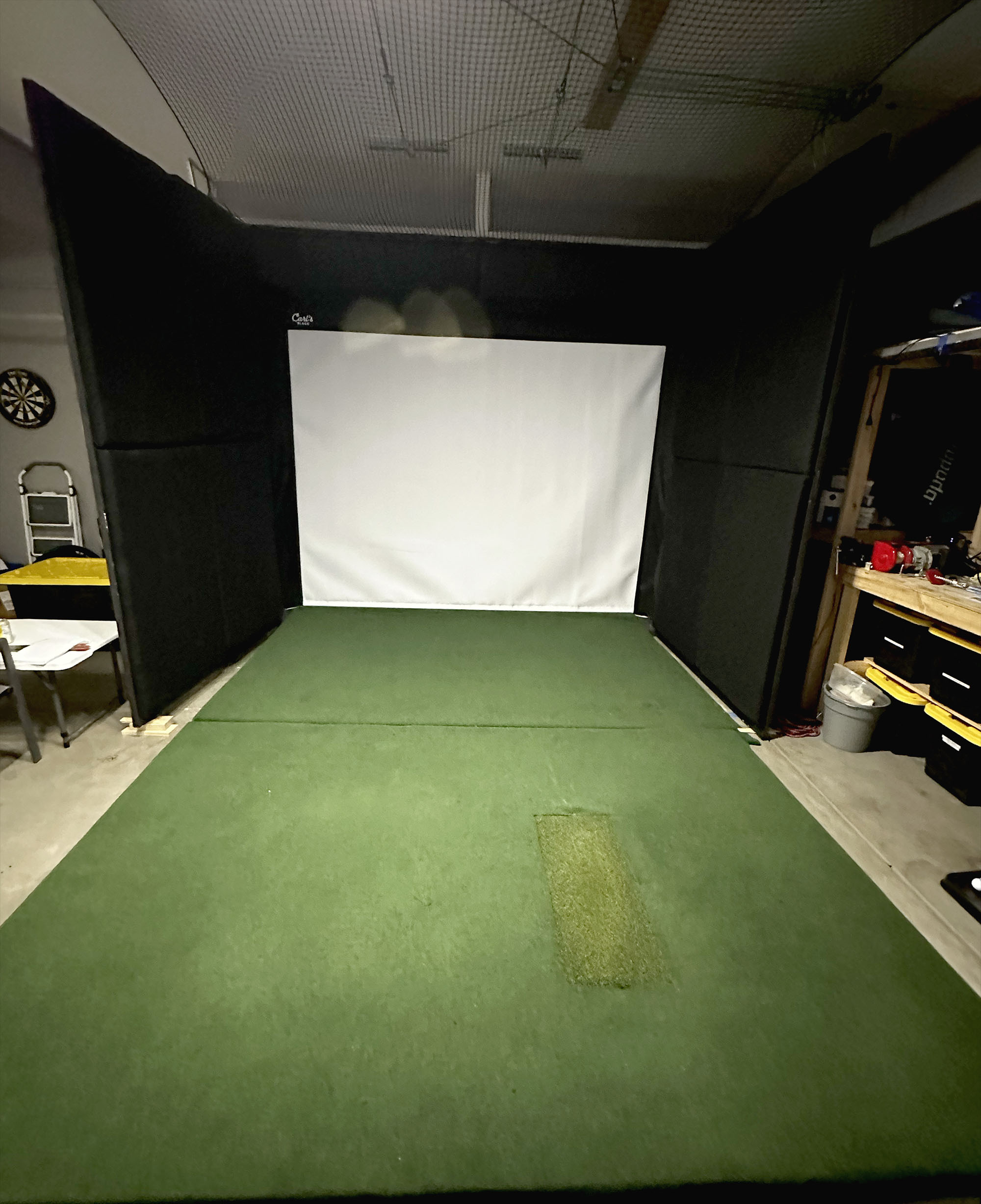 I’m now in my 3rd year of golf sim-ing in my garage. The first year I purchased my Garmin R10 and a cheap golf net off Amazon. Eventually I added a cheap projector and a $20 Walmart projector screen that I zip tied to the net. While this worked pretty well, it wasn’t very secure or pretty. It also allowed bad shanks to fly around the garage.